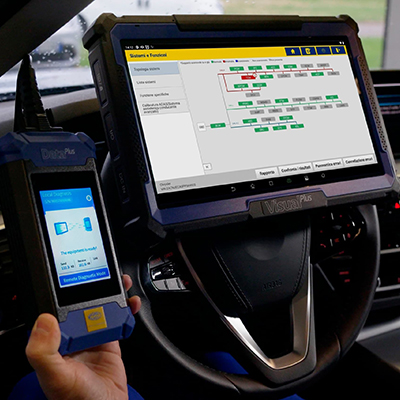 Data Plus er et meget komplet og avanceret instrument, udstyret med en 3,97" Single Touch-skærm, der kan dække forskellige behov for diagnose. Den er forbundet med Visual Plus via Wi-Fi og giver mulighed for diagnosticering af flere mærker, idet den trækker på en af de mest omfattende databaser på markedet, takket være de omkring 150 europæiske, asiatiske og amerikanske producenter. Enheden kan også udføre online-kodning for meget avancerede indgreb og aktivere guidede diagnostiske procedurer.